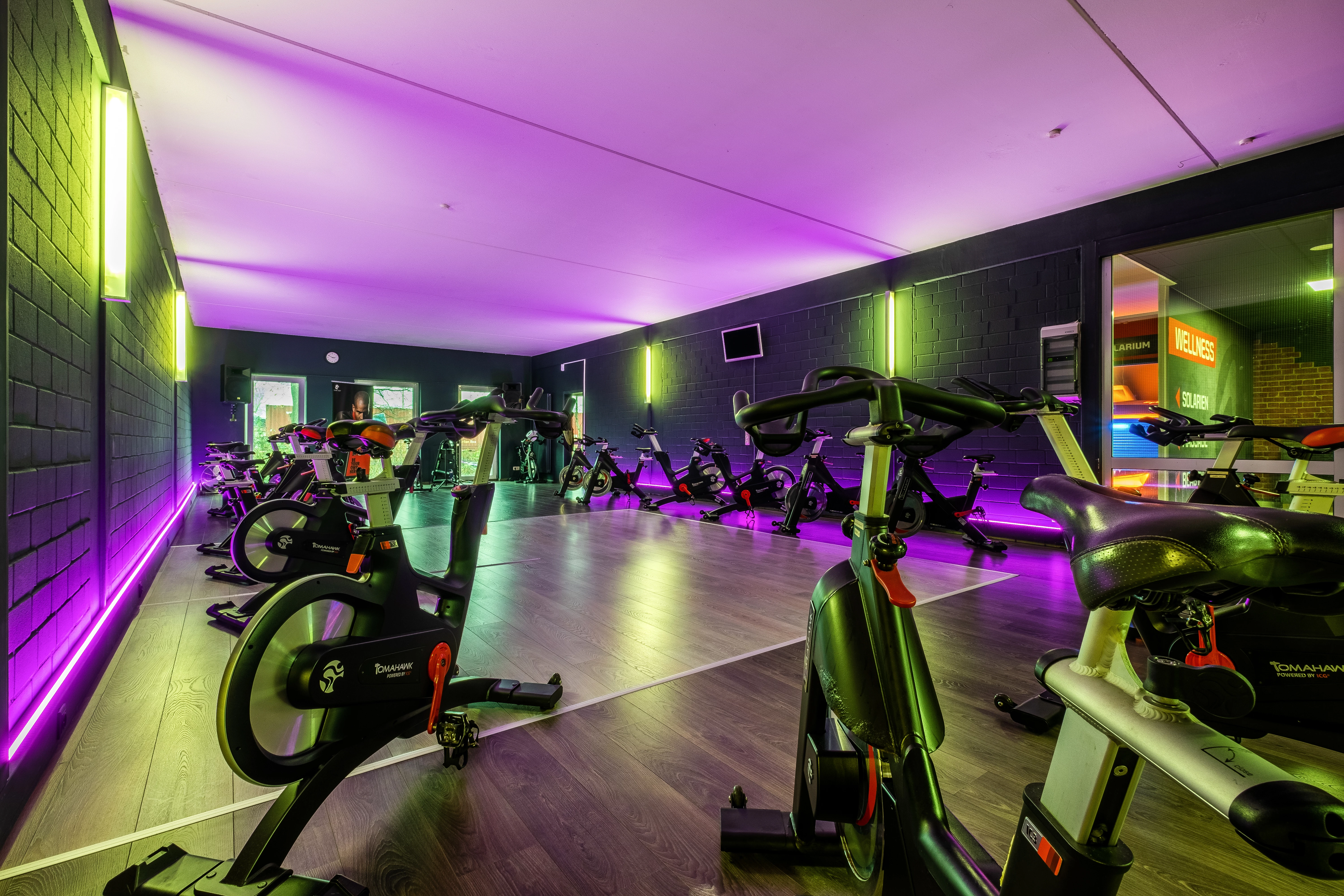 Großer Wellnessbereich mit Solarien, Massageliegen, Collagenbänke und Saunen